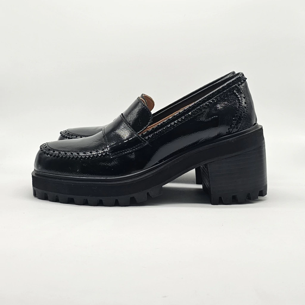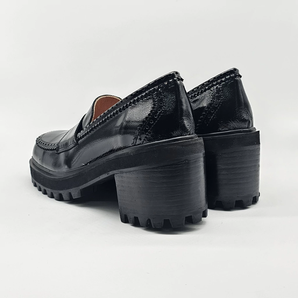 Mocasín confeccionado artesanalmente en cuero vacuno seleccionado, sobre base de goma con taco foliado y gomín tipo ruta.