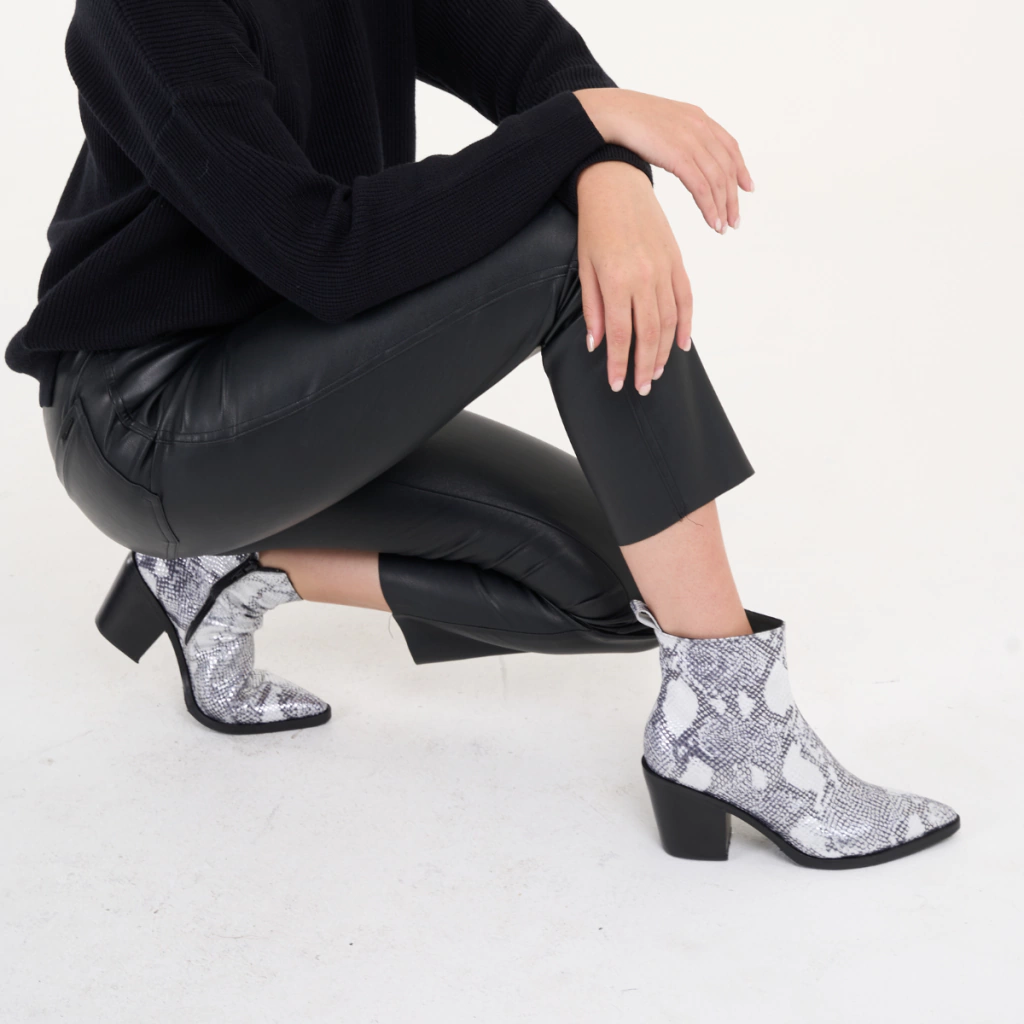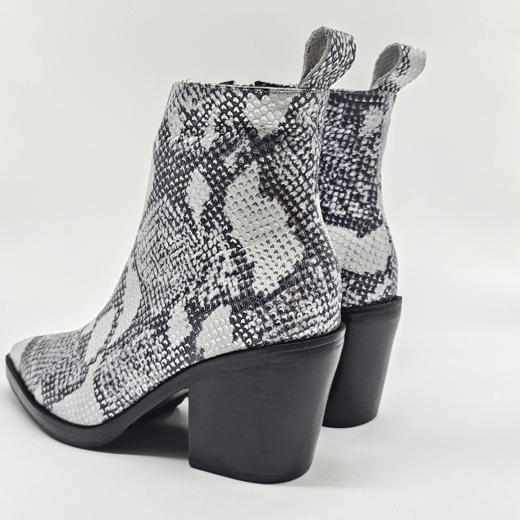 Bota Anne, colección otoño 2025, confeccionada artesanalmente en cuero vacuno seleccionado en exterior e interior, con grabado reptil.