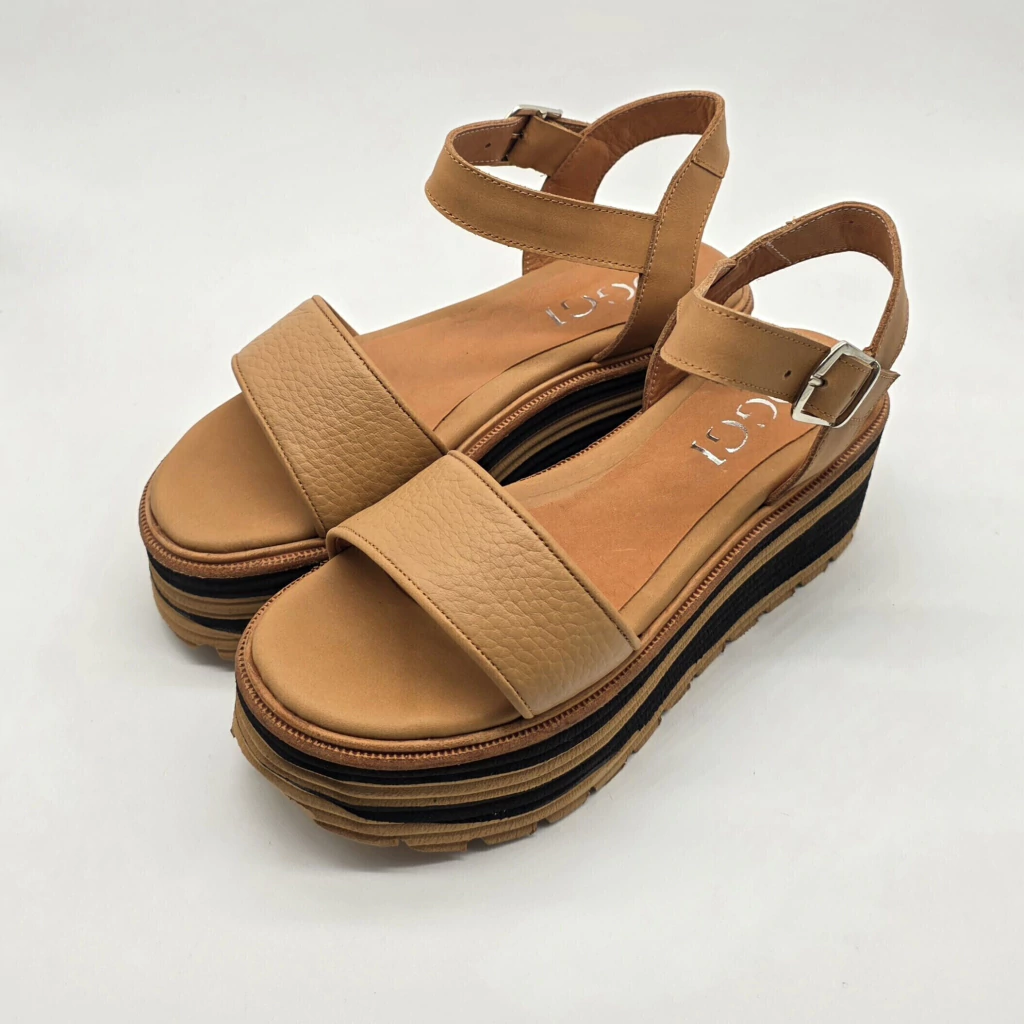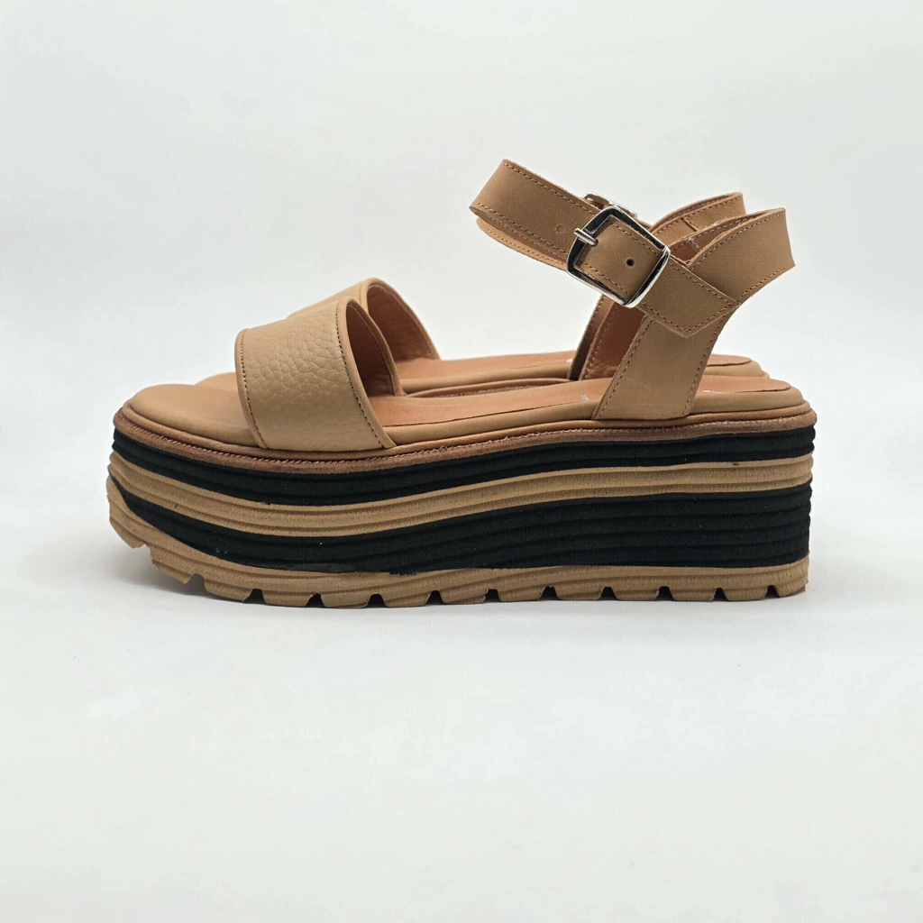 Sandalia confeccionada artesanalmente en cuero vacuno seleccionado en exterior e interior. Sobre base de goma eva de alta densidad con vira de suela.
