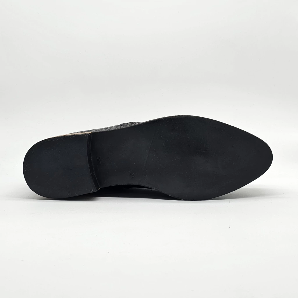 Bota confeccionada artesanalmente en cuero vacuno seleccionado grabado reptil.