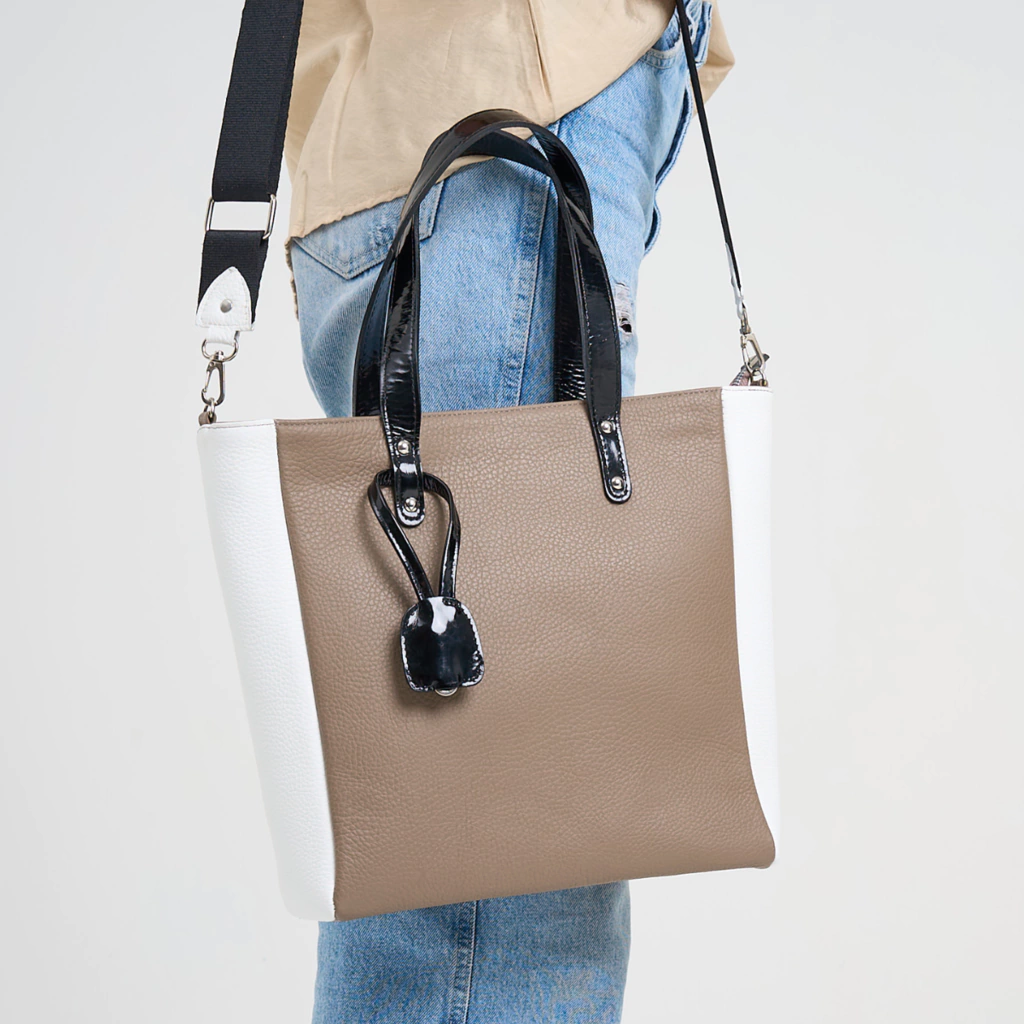 Posee un portallaveros también en charol que le otorga un toque distintivo. Está forrada en gross y tiene bolsillo interior.