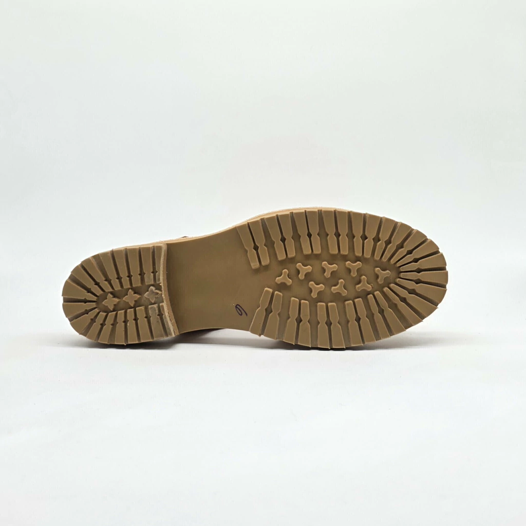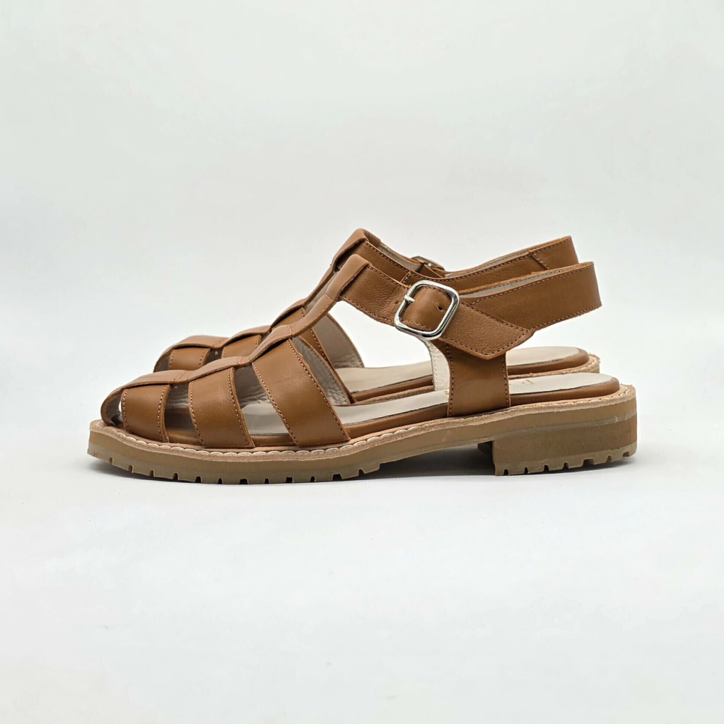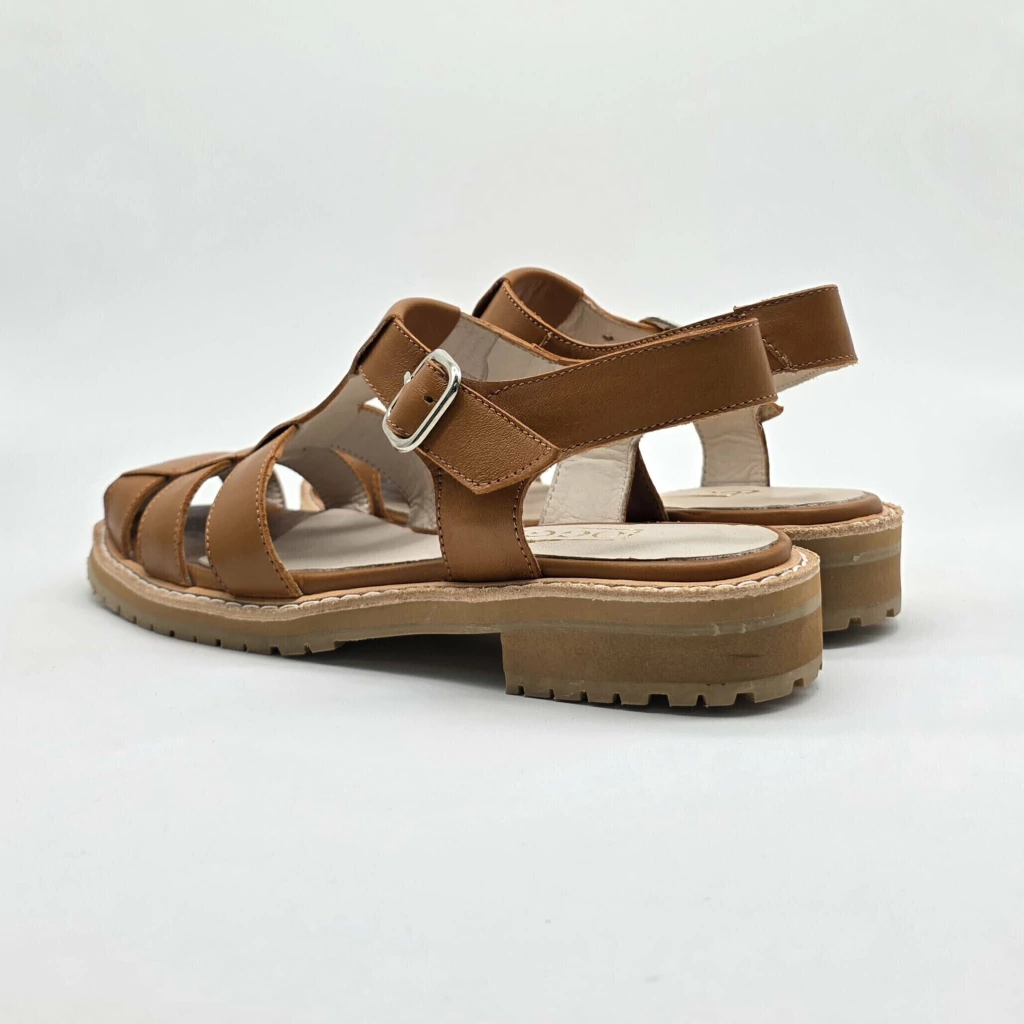 Sandalia confeccionada artesanalmente en cuero vacuno seleccionado sobre base de goma eva de alta densidad flexible con gomín tipo ruta.