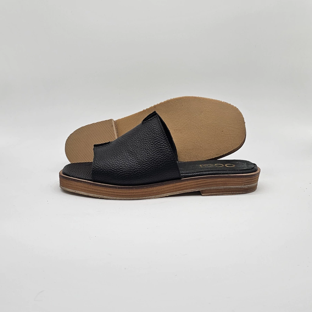 Flat confeccionada artesanalmente en cuero vacuno seleccionado en exterior e interior, sobre base de goma eva de alta densidad, con gomín punta de diamante.