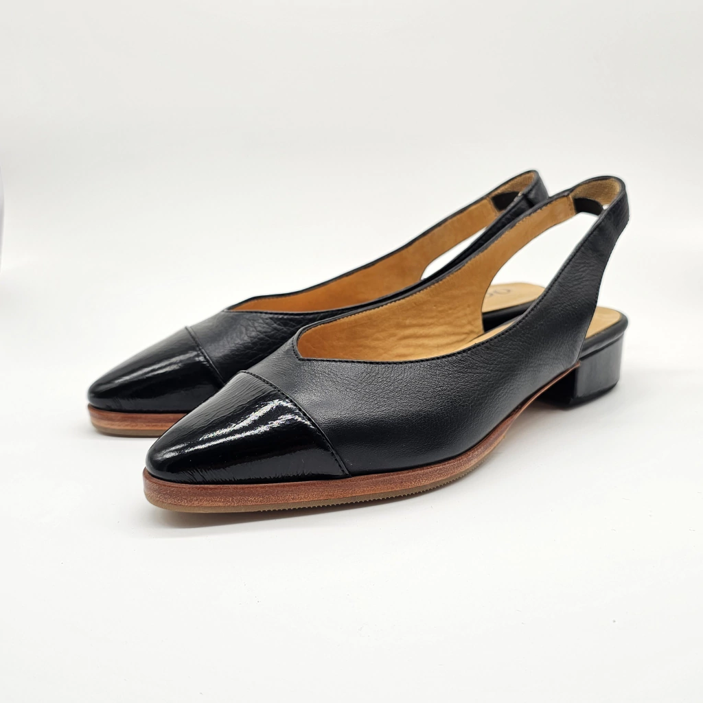 Zapatos confeccionados artesanalmente en cuero vacuno en interior y exterior, con detalle de elástico para favocer el calce, sobre base de suela con gomín antideslizante.