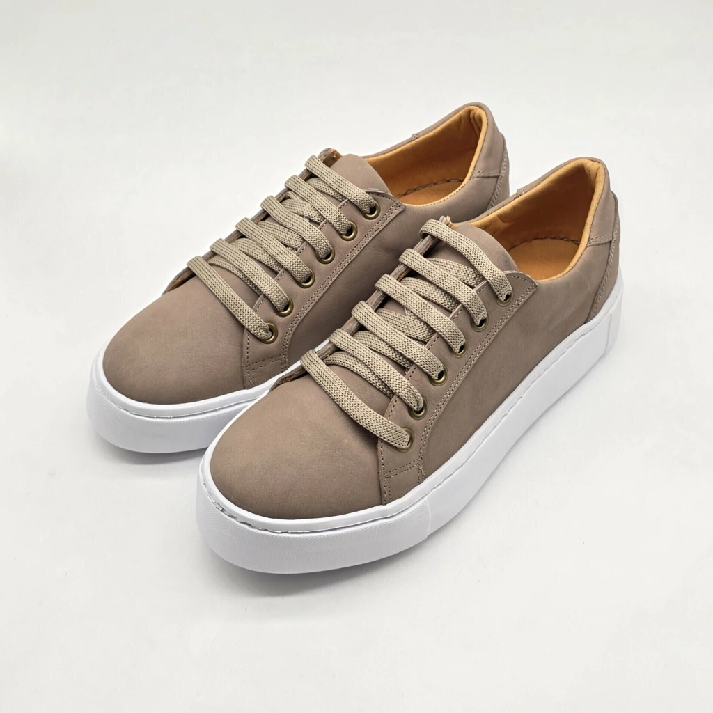 Zapatilla clásica en cuero vacuno seleccionado en exterior e interior, con la particularidad de estar cosida a la base de goma antideslizante y ultraliviana de 3.5 cm de altura.