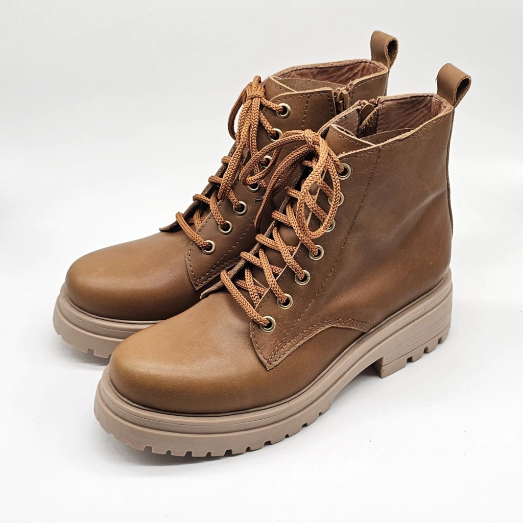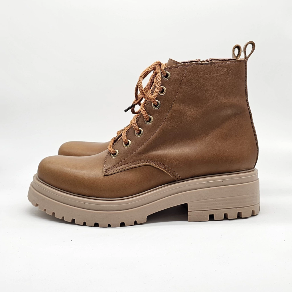 Borcego confeccionado en cuero vacuno en interior y exterior. Con detalle de cierre lateral para facilitar el calce. Sobre base de goma antideslizante de altura 3 cm en taco y 2 cm en plataforma. Caña de 12 cm de alto.