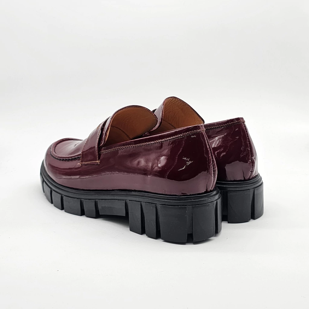 Mocasín confeccionada en cuero vacuno en exterior e interior,con detalle de corte en capellada, sobre base de goma de altura de 3.5 cm en talón y 2.5cm en plataforma.