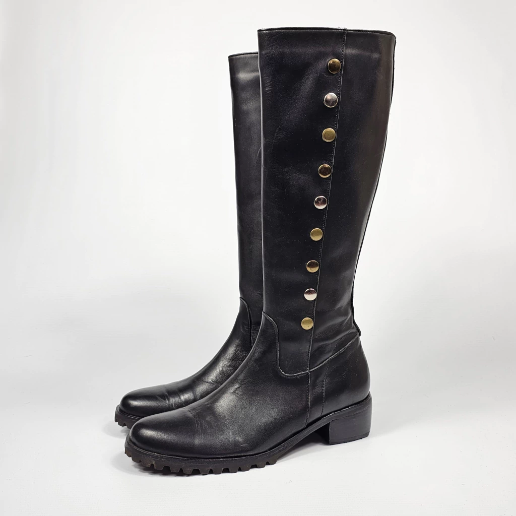 Bota confeccionada artesanalmente en cuero vacuno seleccionado con detalle de tachas laterales y cierre interno. Sobre base de goma tipo tractor.