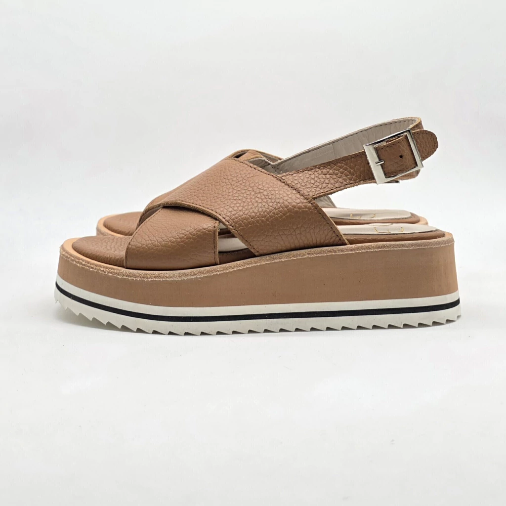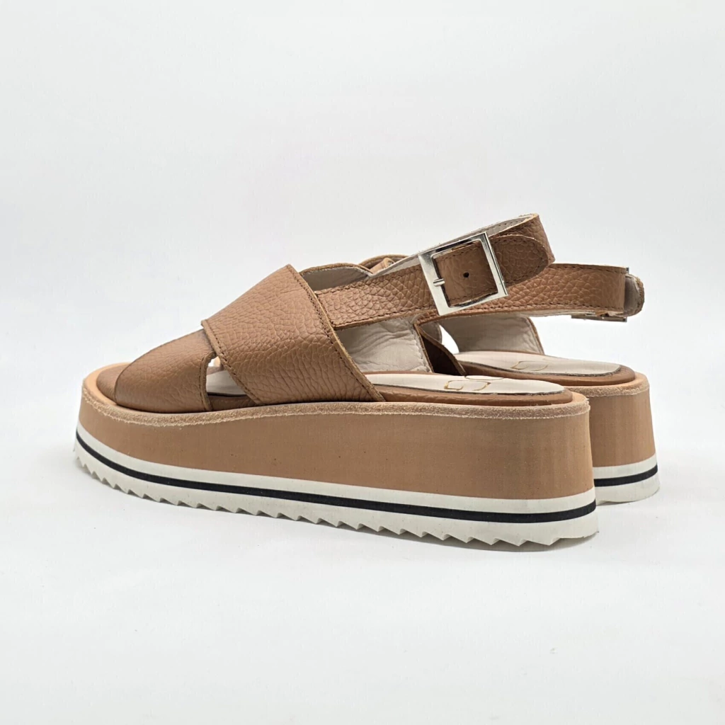 Sandalia confeccionada artesanalmente en cuero vacuno seleccionado en interior y exterior. Sobre base de goma eva de alta densidad.