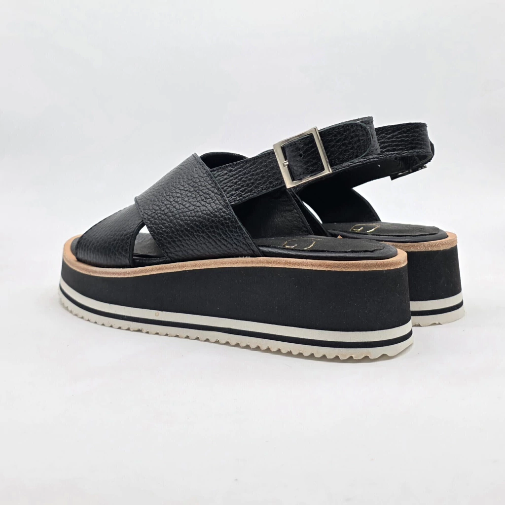 Sandalia confeccionada artesanalmente en cuero vacuno seleccionado en interior y exterior con detalle de capellada acolchada. Sobre base de goma eva de alta densidad.