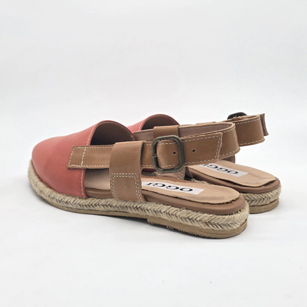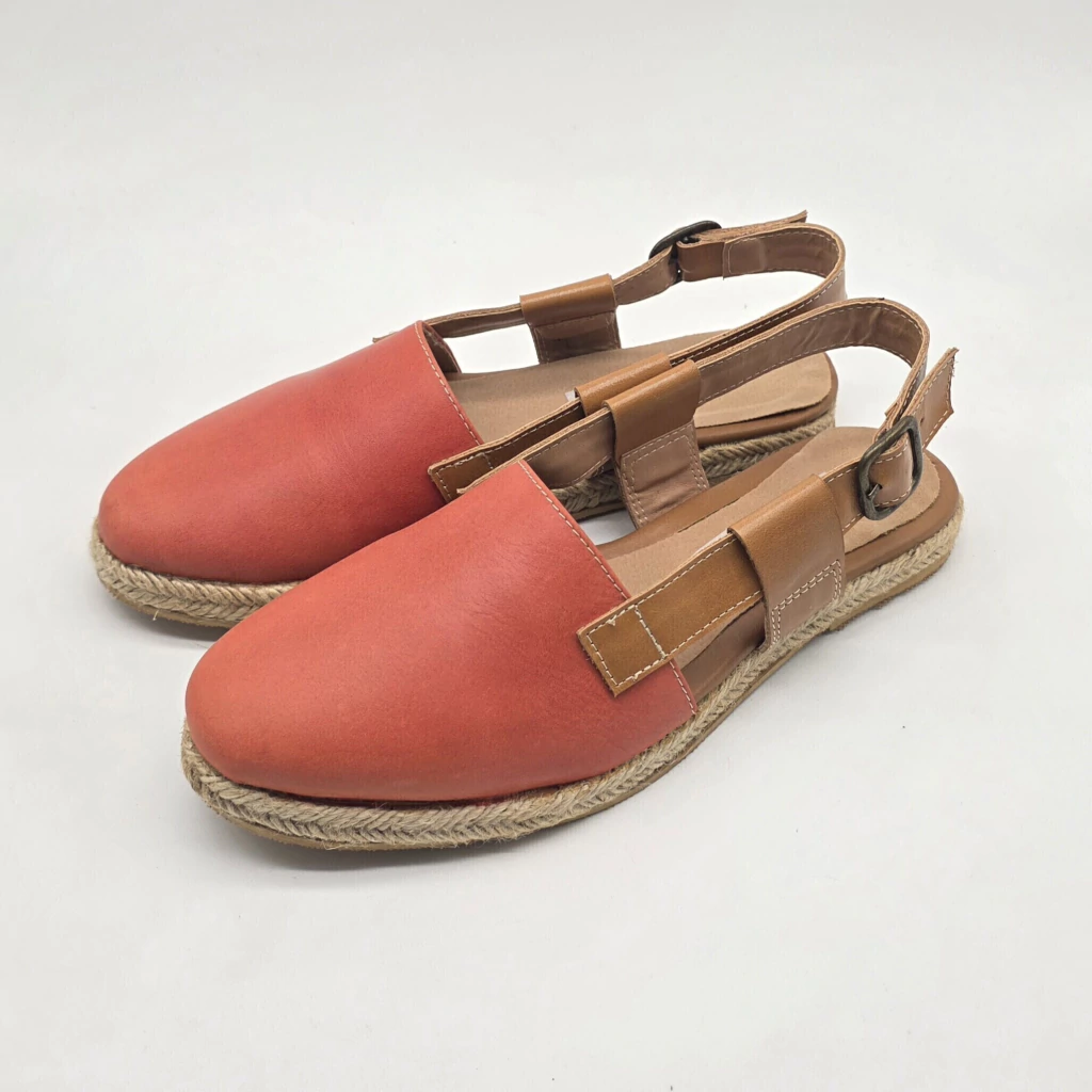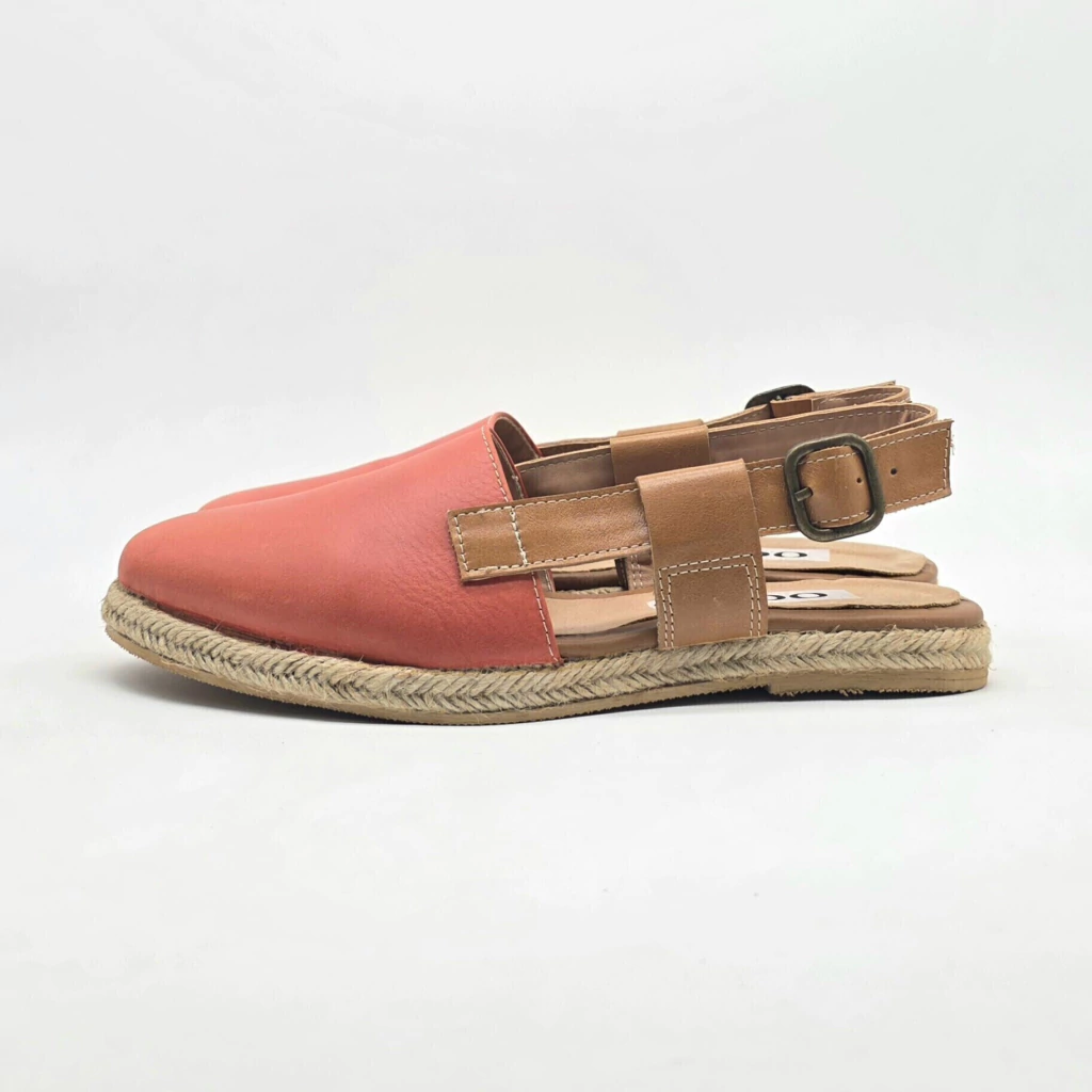 Descubre la sandalia Valencia, una pieza excepcional confeccionada en cuero forrada en cuero vacuno, que combina elegancia y confort. Su diseño sobre una base artesanal de yute natural y goma antideslizante de 2,5 cm de altura, garantiza estabilidad y un andar placentero.