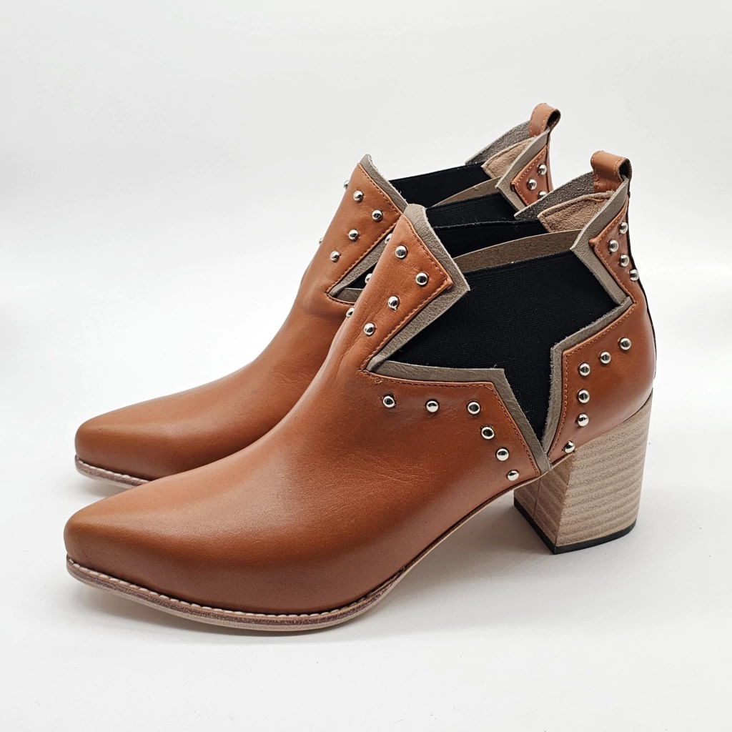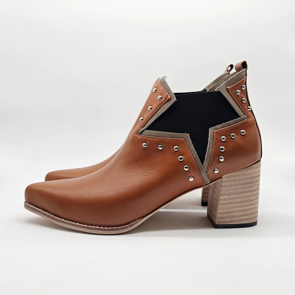 Con detalle de estrella integramente de cuero con fondo de suela y taco de 5.5 cm aproximadamente