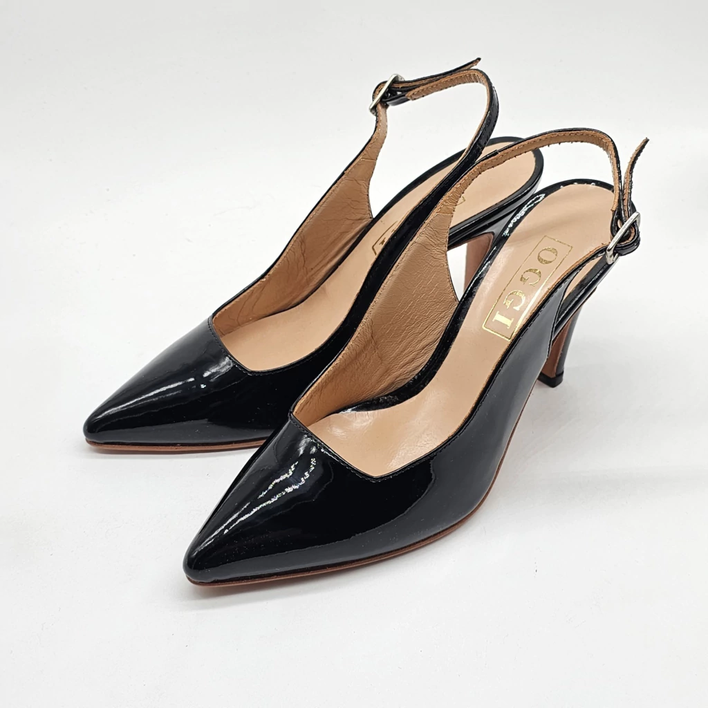 Stiletto sin talón confeccionado artesanalmente en cuero vacuno seleccionado. Sobre base de suela y taco de 10 cm.