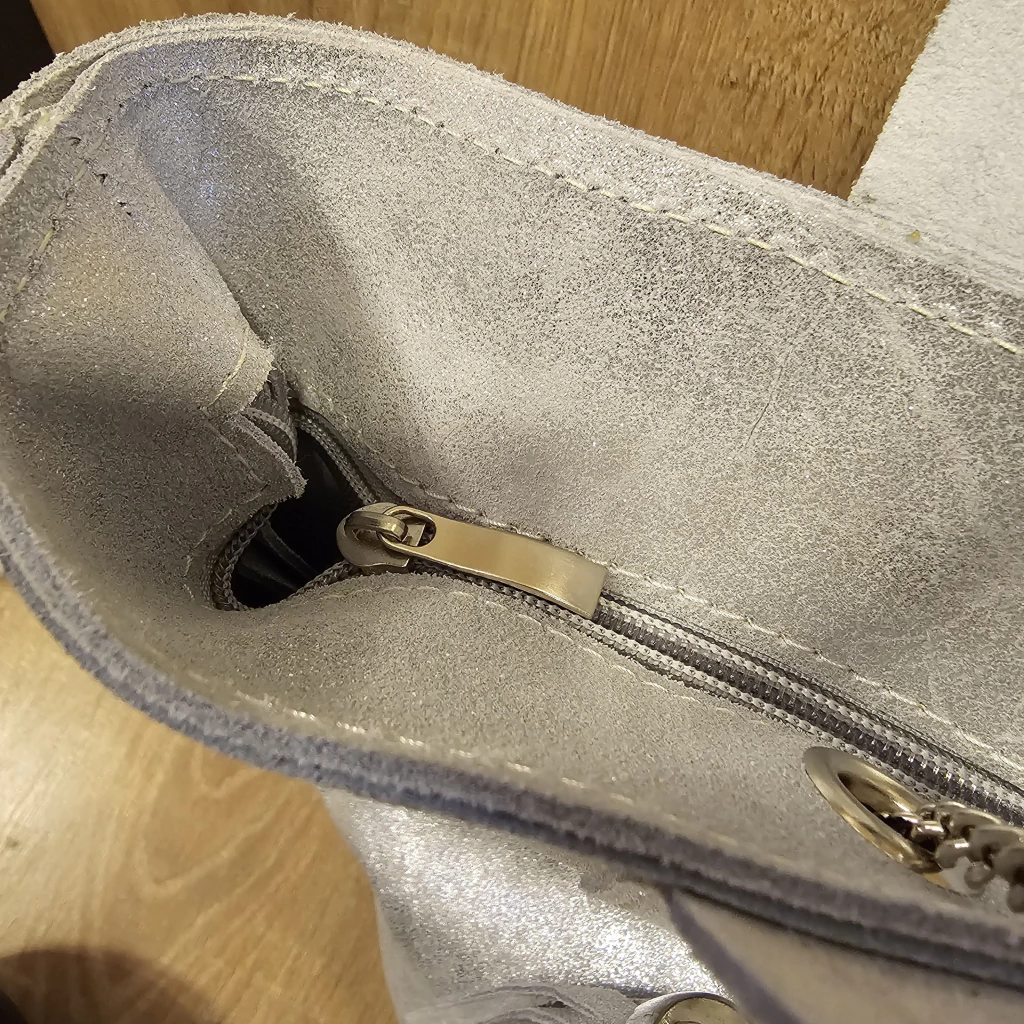 Con un detalle de fleco que aporta un toque distintivo, esta cartera se destaca por su diseño elegante y moderno. Además, cuenta con un sobre interno que te permite organizar tus pertenencias de manera práctica y accesible.