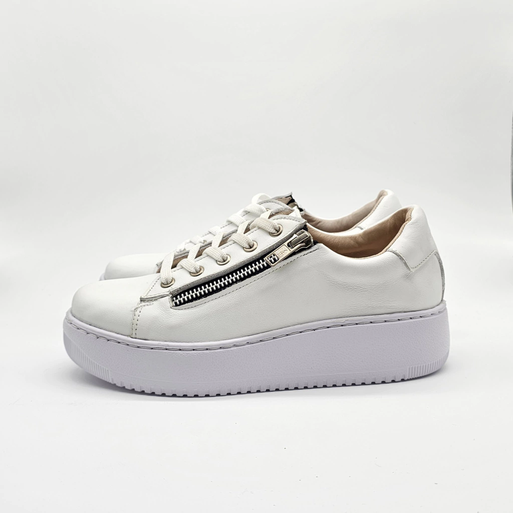 Zapatilla confeccionada en cuero vacuno seleccionado en exterior e interior, con detalle de cierre lateral para facilitar el calce, plantilla y lengüeta acolchadas. Base de goma antideslizante y liviana de 4cm.